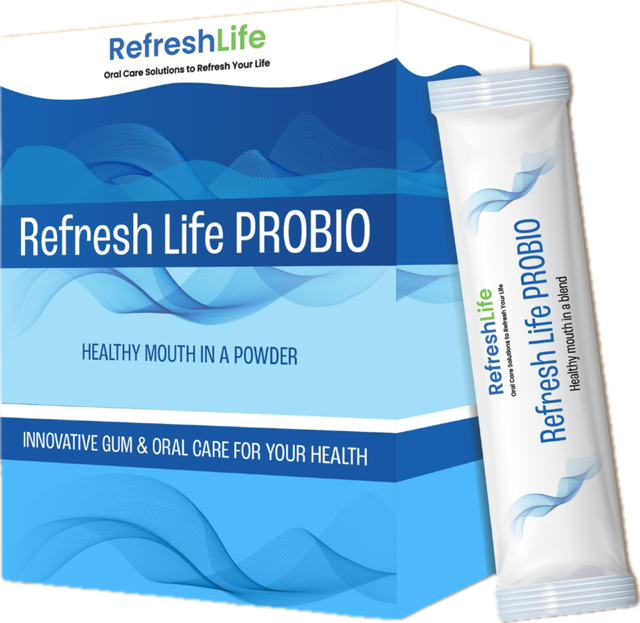 Refresh Life PROBIO is a unique proprietary blend of Prebiotics, Probiotics, and Postbiotics plus additional all-natural ingredients to support a Healthy Mouth. Essentially a Healthy Mouth in an easy to use, great tasting powder that simply melts in your mouth.